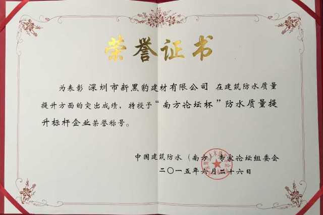 “南方論壇杯”防水質(zhì)量提升標(biāo)桿企