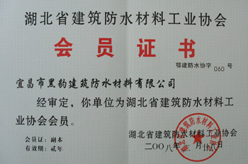 2008年3月28日,我公司宜昌分公司被認定為“湖北省建筑防水材料工業(yè)協(xié)會”會員單位,我公司同時還是“中國建筑學會防水技術專業(yè)委員會”會員單位。
