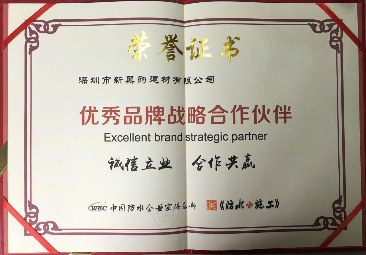 2016年10月,我公司被《防水與施工》雜志評為優(yōu)秀品牌戰(zhàn)略合作伙伴,我公司一定不會辜負消費者的期望,將在未來的事業(yè)發(fā)展中,為消費者提供更好的防水產(chǎn)品,為中國防水材料事業(yè)的發(fā)展做出新的貢獻!