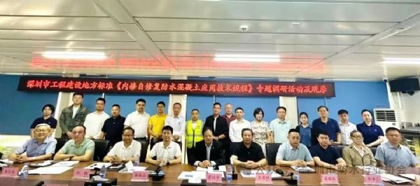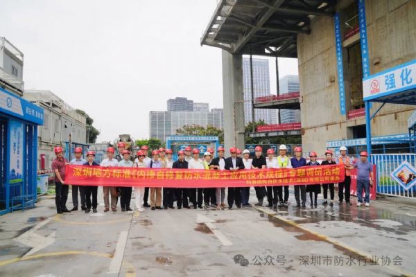 2024年4月11日,深圳市工程建設(shè)地方標(biāo)準(zhǔn)《內(nèi)摻自修復(fù)防水混凝土應(yīng)用技術(shù)規(guī)程》專題調(diào)研活動(dòng)在深圳中建科工前海金控大廈項(xiàng)目部舉行。 我公司董事長(zhǎng)王榮柱先生同深圳市工程建設(shè)地方標(biāo)準(zhǔn)《內(nèi)摻自修復(fù)防水混凝土應(yīng)用技術(shù)規(guī)程》的主要參編單位代表、編制專家等30余人一同觀摩了深圳中建科工前海金控大廈項(xiàng)目地下室側(cè)墻防水工程。該項(xiàng)目?jī)?nèi)摻科洛抗裂劑解決溫度裂縫,根據(jù)現(xiàn)場(chǎng)調(diào)研考察情況,已完工部分未出現(xiàn)開裂,受到項(xiàng)目總工、編制專家一致好評(píng)。隨后,在項(xiàng)目部會(huì)議室召開座談交流會(huì)。 標(biāo)準(zhǔn)主編、深圳市防水行業(yè)協(xié)會(huì)會(huì)長(zhǎng)瞿培華主持會(huì)議并講話。他逐一介紹了本標(biāo)準(zhǔn)的編制組成員,并提出要求:每位成員應(yīng)盡責(zé)、盡心、盡力,符合深圳市工程建設(shè)地方標(biāo)準(zhǔn)制修訂規(guī)矩和要求,緊貼國(guó)家標(biāo)準(zhǔn)《建筑與市政工程防水通用規(guī)范》GB 55030-2022與深圳地方標(biāo)準(zhǔn)《建設(shè)工程防水技術(shù)標(biāo)準(zhǔn)》SJG 19-2023,助力本標(biāo)準(zhǔn)順利編制。 協(xié)會(huì)總工程師劉國(guó)華介紹了標(biāo)準(zhǔn)編制的最新進(jìn)展,也期望各參編單位和專家能夠積極配合協(xié)助標(biāo)準(zhǔn)的后續(xù)工作。標(biāo)準(zhǔn)主編、深圳市市政工程質(zhì)量安全監(jiān)督總站副站長(zhǎng)蔣桂山講話。他表示,深圳建筑行業(yè)的高質(zhì)量發(fā)展需要我們共同出謀劃策,2024年政府工作報(bào)告提出,大力推進(jìn)現(xiàn)代化產(chǎn)業(yè)體系建設(shè),加快發(fā)展新質(zhì)生產(chǎn)力,在建筑行業(yè)的防水領(lǐng)域,本標(biāo)準(zhǔn)的制定和實(shí)施正是積極響應(yīng)了這一號(hào)召,通過新材料、新工藝、新標(biāo)準(zhǔn)來有效提升防水工程的質(zhì)量。會(huì)上與會(huì)人員就本標(biāo)準(zhǔn)的編制和防水項(xiàng)目工程展開了積極的技術(shù)交流。